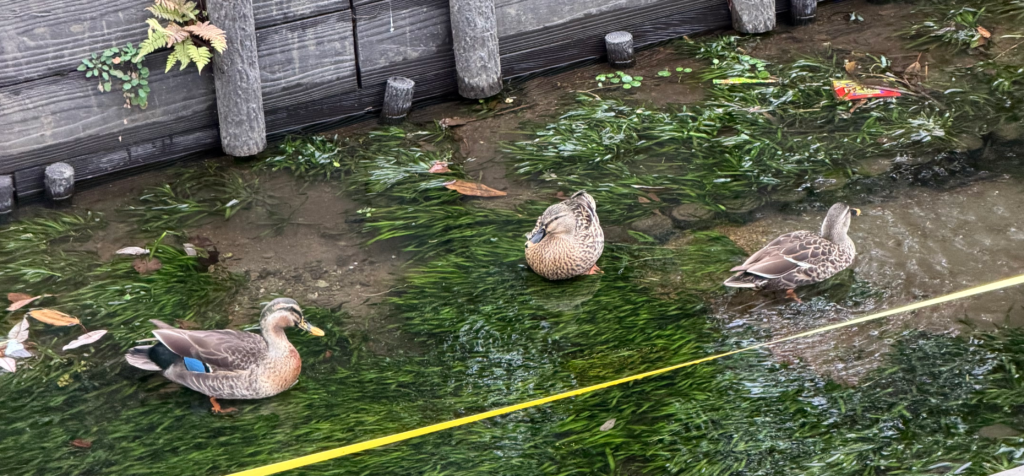 今は静かで鳥たちもリラックスしている江川の風景です。